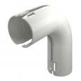 Fitting for plastic electrical installation pipes to create 90° bends. Suitable for Quick pipe pipes or corrugated pipes. Toolless closing and opening. Can be used in a temperature range of –25 to +60 °C.