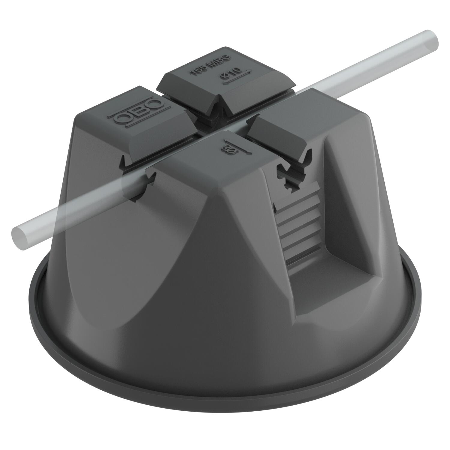 Our product range comprises closed cable tray, wide span tray and mesh cable tray systems. With the mounting adapter, you can fix mesh cable trays to the OBO FangFix stones in a single action. The covers are secured to the flat roof by tightening straps.