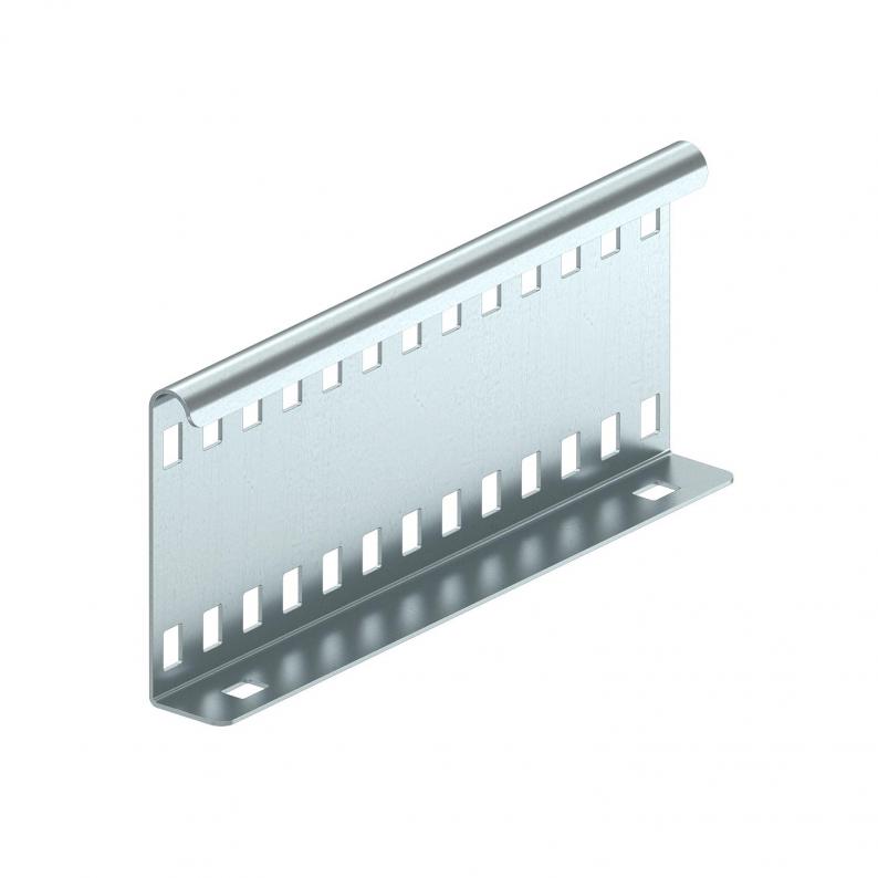 Straight connector as external connector to join cable ladders and fittings with a side height of 100 mm and continuous side perforation.