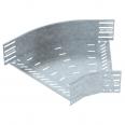 45° bend for the creation of a horizontal branch, fitting for lock and screw-on cable trays of side height 110 mm. Screwless mounting with double clamps or screw connection with FRS truss-head screws and M6 combination nuts. Can be used indoors and outdoors. Fastening material must be ordered separately.