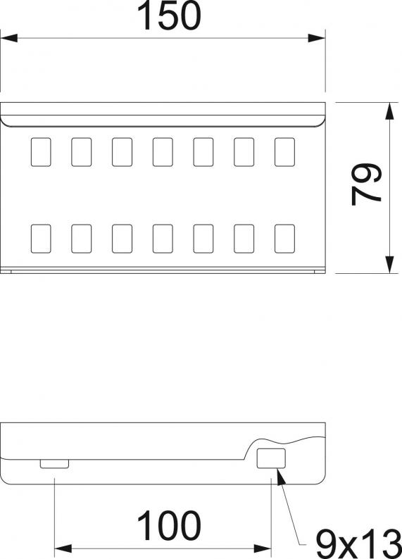 Straight connector as external connector to connect cable ladders and fittings with a side height of 75 mm and continuous side perforation.