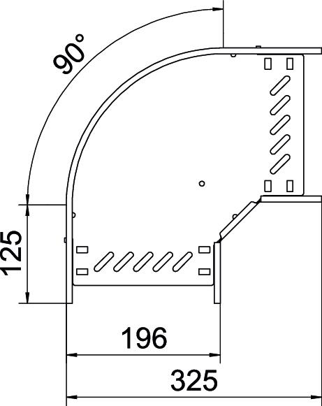 90° bend for the creation of a horizontal branch, fitting for lock and screw-on cable trays of side height 110 mm. Screwless mounting with double clamps or screw connection with FRS truss-head screws and M6 combination nuts. Can be used indoors and outdoors. Fastening material must be ordered separately.