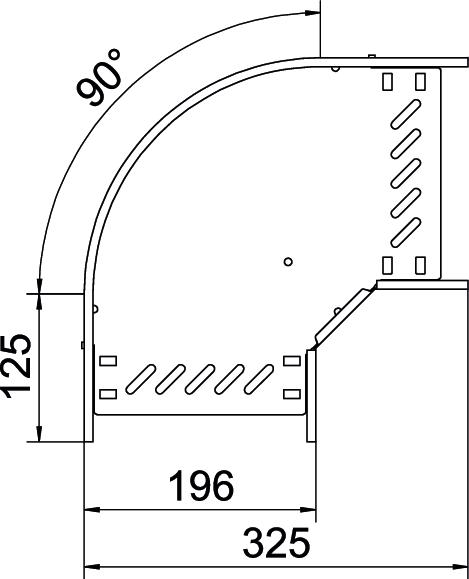 90° bend for the creation of a horizontal branch, fitting for lock and screw-on cable trays of side height 60 mm. Screwless mounting with double clamps or screw connection with FRS truss-head screws and M6 combination nuts. Can be used indoors and outdoors. Fastening material must be ordered separately.