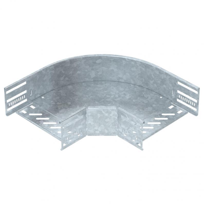 90° bend for the creation of a horizontal branch, fitting for lock and screw-on cable trays of side height 85 mm. Screwless mounting with double clamps or screw connection with FRS truss-head screws and M6 combination nuts. Can be used indoors and outdoors. Fastening material must be ordered separately.