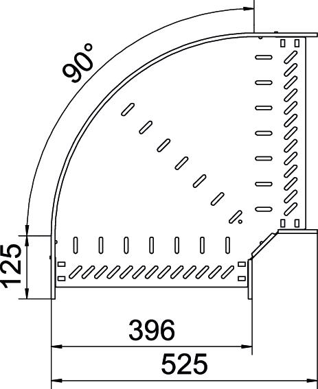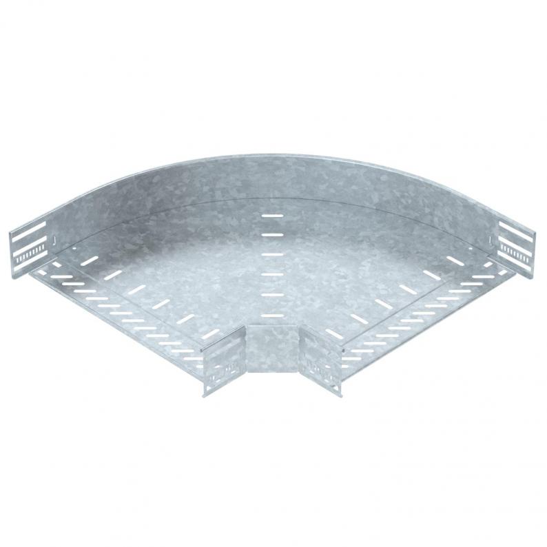 90° bend for the creation of a horizontal branch, fitting for lock and screw-on cable trays of side height 85 mm. Screwless mounting with double clamps or screw connection with FRS truss-head screws and M6 combination nuts. Can be used indoors and outdoors. Fastening material must be ordered separately.