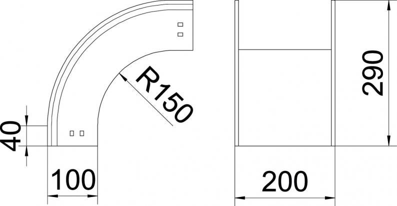 90° vertical bend, falling, for all GKS... cable tray types of 100 mm side height.