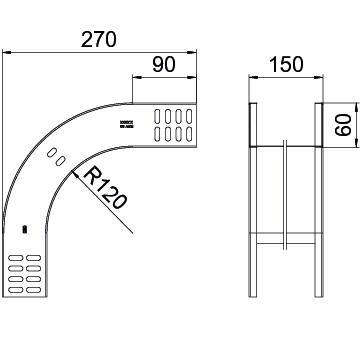 90° vertical bend, falling, for all cable tray types of 60 mm side height.