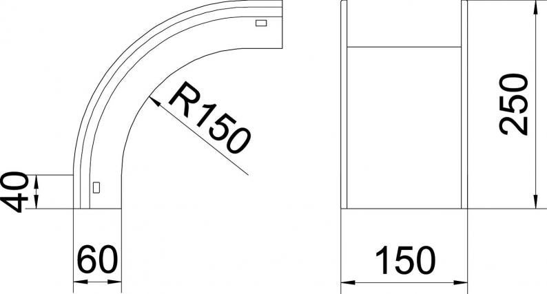 90° vertical bend, falling, for all GKS... cable tray types of 60 mm side height.