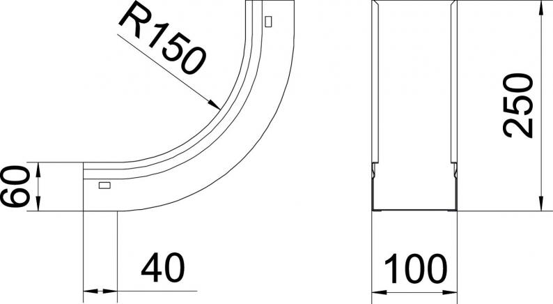 90° rising vertical bend, for all GKS... cable tray types of 60 mm side height.