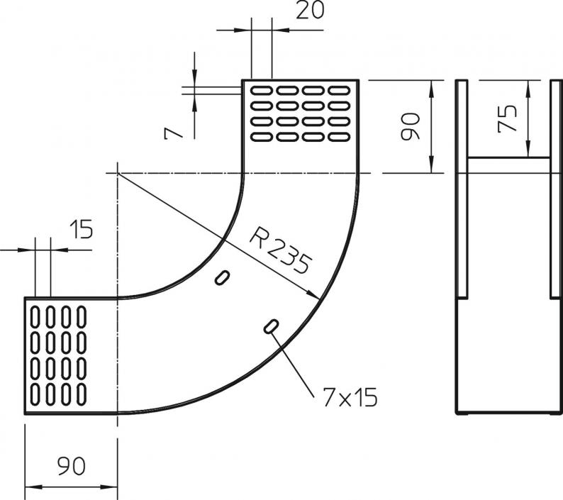 90° rising vertical bend, for all cable tray types of 110 mm side height.