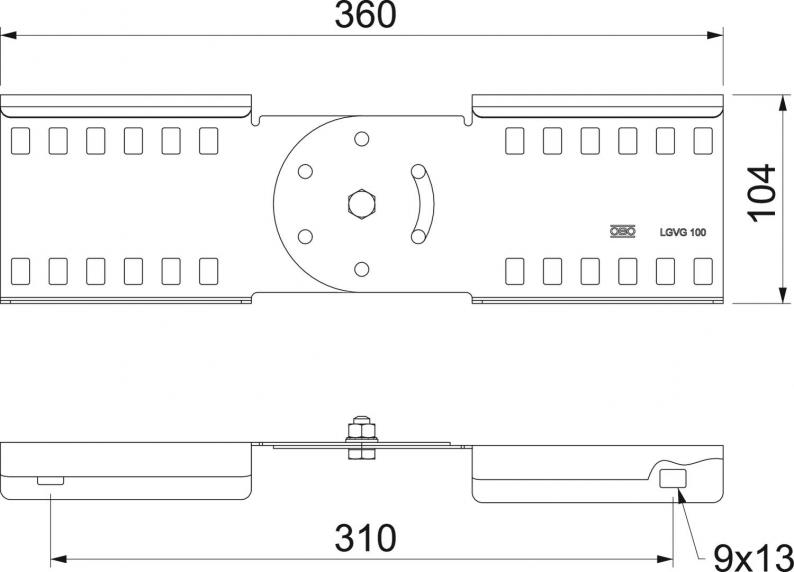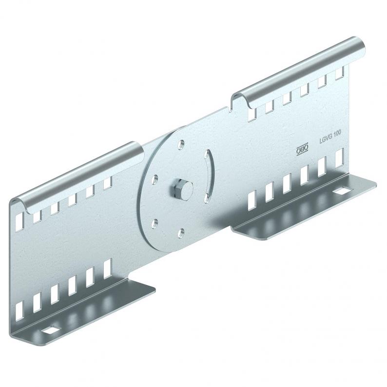 Adjustable connector as external connector to join cable ladders and fittings with a side height of 100 mm and continuous rail perforation. Angle can be adjusted vertically.