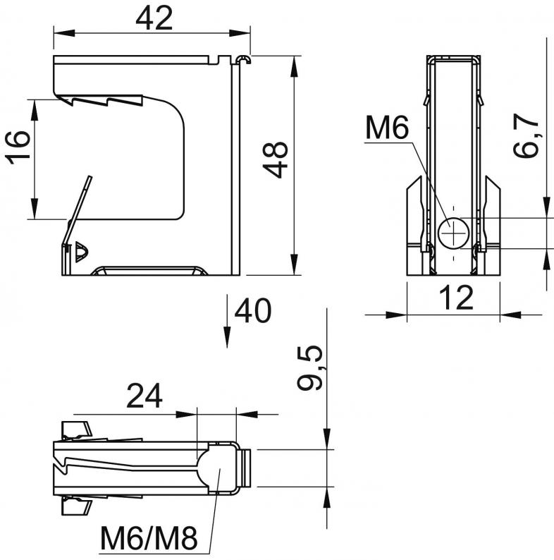 The multifunctional beam clamp is suitable for fastening cables, protective pipes and cable sections on steel girders of any size (one clip for every application). Here, the beam clamp is very versatile thanks to various fastening options. Mounting of the beam clamp is quick and efficient, with no need for welding or drilling. It is simply mounted by hammering or pushing into place. The beam clamp can be used in both internal and external areas.