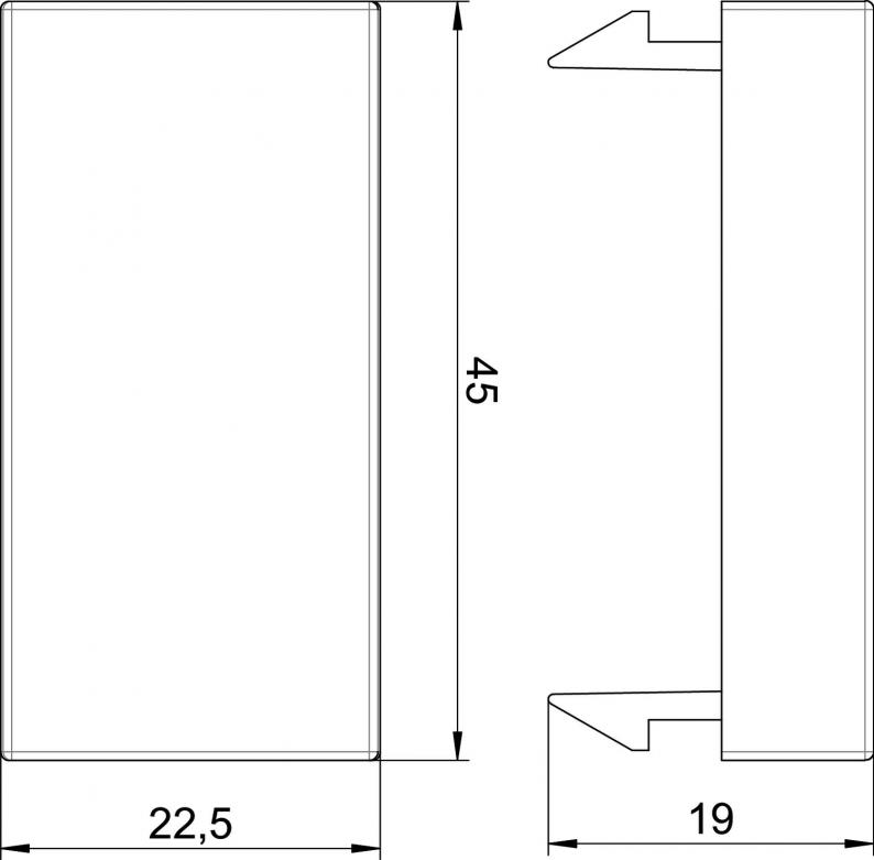 Blanking cover for closing off empty spaces for a half device (1/2 module).