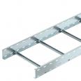 Cable ladder with perforated side rail of side height 100 mm with riveted C profile rungs, open in an upwards direction. Assignment of the rungs on both sides possible using U clamps.