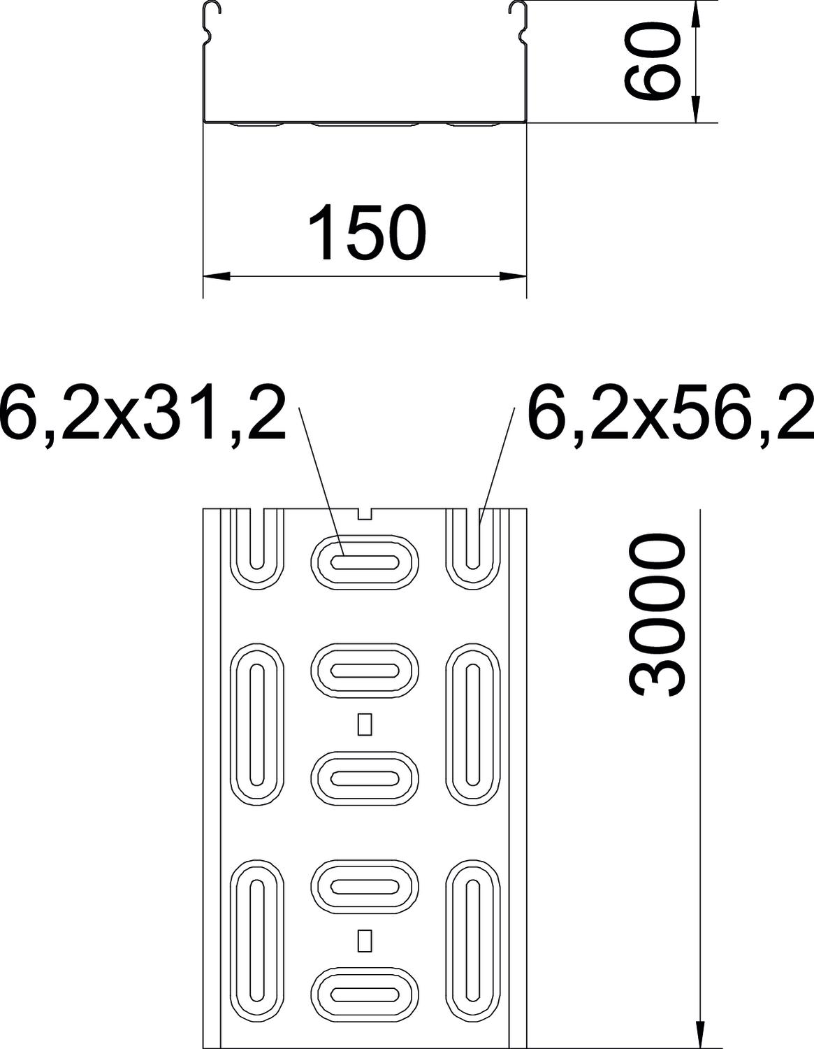 GKS 60 GX = perforated cable tray system with 60 mm side height