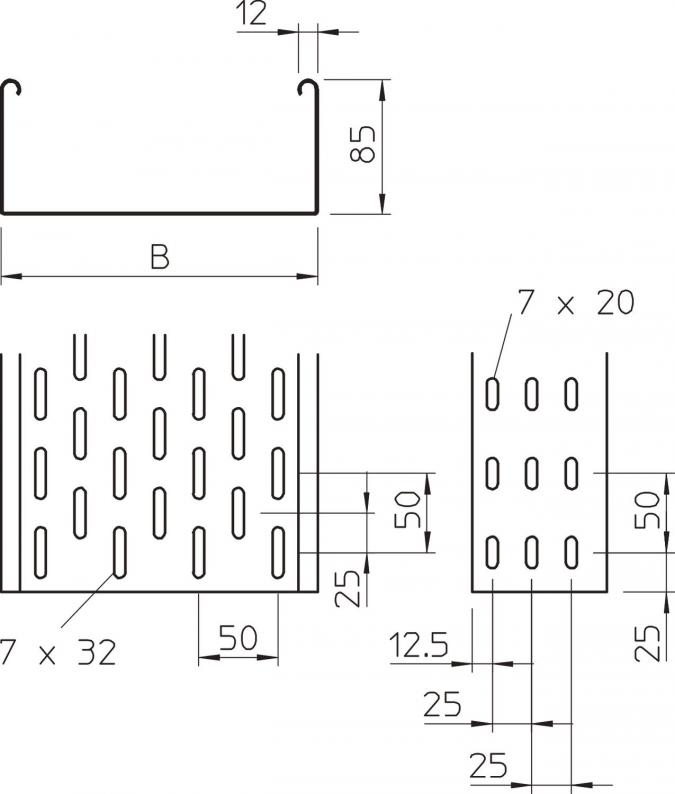 SKS 85 = heavy-duty cable tray system with 85 mm side height.