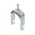 Clamp clip with F-foot, metal pressure sleeve with rounded edges to protect the cable. For vertical and horizontal mounting of 1 single cable on flat bars. With 1-start screw thread on pressure sleeve, universal hexagonal screw head WAF10, with slot and cross recess. Suitable for assembly indoors and outdoors. We recommend the use of a counter-sleeve.