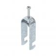 Clamp clip with F-foot, metal pressure sleeve with rounded edges to protect the cable. For vertical and horizontal mounting of 2 single cables on flat bars. With 1-start screw thread on pressure sleeve, universal hexagonal screw head WAF10, with slot and cross recess. Suitable for assembly indoors and outdoors. Multiple cables should be separated by double sleeves. We recommend the use of a counter-sleeve.