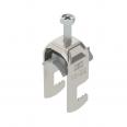 Clamp clip with F-foot, plastic pressure trough made of polypropylene. For vertical and horizontal mounting of 1 single cable on flat bars. With 1-start screw thread on pressure trough, universal hexagonal screw head WAF10, with slot and cross recess. Suitable for mounting indoors and outdoors. We recommend the use of a counter-trough.