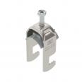 Clamp clip with F-foot, plastic pressure trough made of polypropylene. For vertical and horizontal mounting of 1 single cable on flat bars. With 1-start screw thread on pressure trough, universal hexagonal screw head WAF10, with slot and cross recess. Suitable for mounting indoors and outdoors. We recommend the use of a counter-trough.