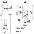 Clamp clip with hammerhead foot, plastic pressure sleeve made of polypropylene. For vertical and horizontal mounting of 1 single cable on a C-profile rail. For a slot width 16–17 mm. With 1-start screw thread on pressure sleeve, universal hexagonal screw head WAF10, with slot and cross recess. Suitable for assembly indoors and outdoors. We recommend the use of a counter-sleeve.