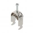 Clamp clip with hammerhead foot, metal pressure trough with rounded edges to protect the cable. For vertical and horizontal mounting of 1 single cable on a C-profile rail. For a slot width of 16–17 mm. With 1-start screw thread on pressure trough, universal hexagonal screw head WAF10, with slot and cross recess. Suitable for mounting indoors and outdoors. We recommend the use of a counter-trough.
