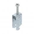 Clamp clip with N-foot, metal pressure sleeve with rounded edges to protect the cable. For vertical and horizontal mounting of 2 single cables on a C-profile rail. For slot width 11‒12 mm With 1-start screw thread on pressure sleeve, universal hexagonal screw head WAF10, with slot and cross recess. Suitable for assembly indoors and outdoors. Multiple cables should be separated by double sleeves. We recommend the use of a counter-sleeve.