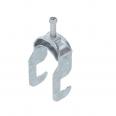 Clamp clip with RS foot, metal pressure sleeve with rounded edges to protect the cable. For vertical and horizontal mounting of 1 single cable on round profiles or pipes. With 1-start screw thread on pressure sleeve, universal hexagonal screw head WAF10, with slot and cross recess. Suitable for all round profile irons or pipes with diameters up to 22 mm. Suitable for mounting indoors and outdoors. We recommend the use of a counter-trough.