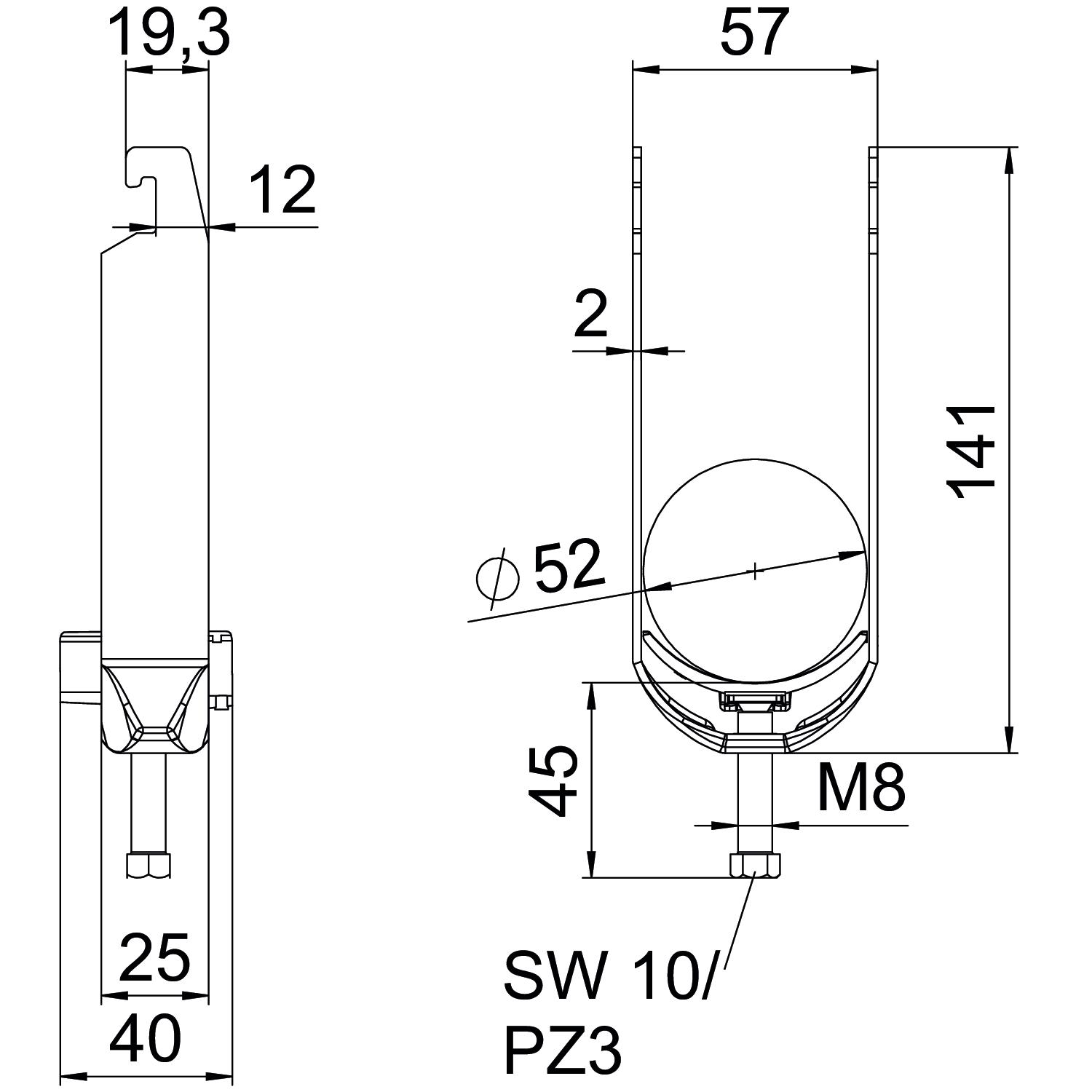 | Clamping range D, max. | 52 mm |