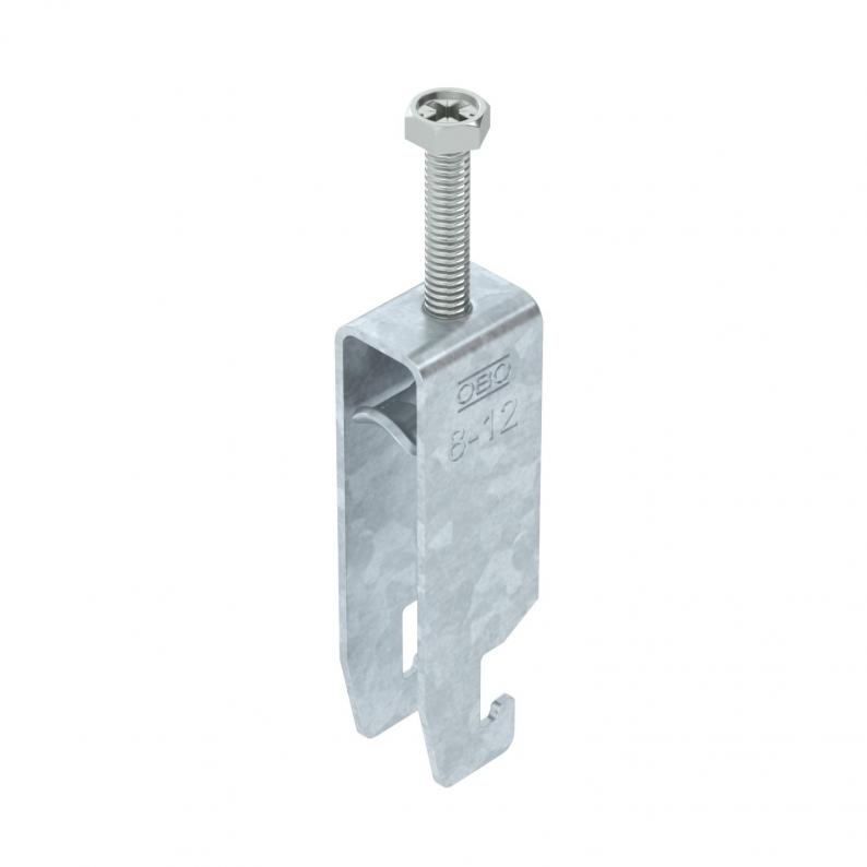 Clamp clip with U-foot, metal pressure sleeve with rounded edges to protect the cable. For vertical and horizontal mounting of 3 single cables on a C-profile rail. For slot width 18–22 mm. With 1-start screw thread on pressure sleeve, universal hexagonal screw head WAF10, with slot and cross recess. Suitable for assembly indoors and outdoors. Multiple cables should be separated by double sleeves. We recommend the use of a counter-sleeve.