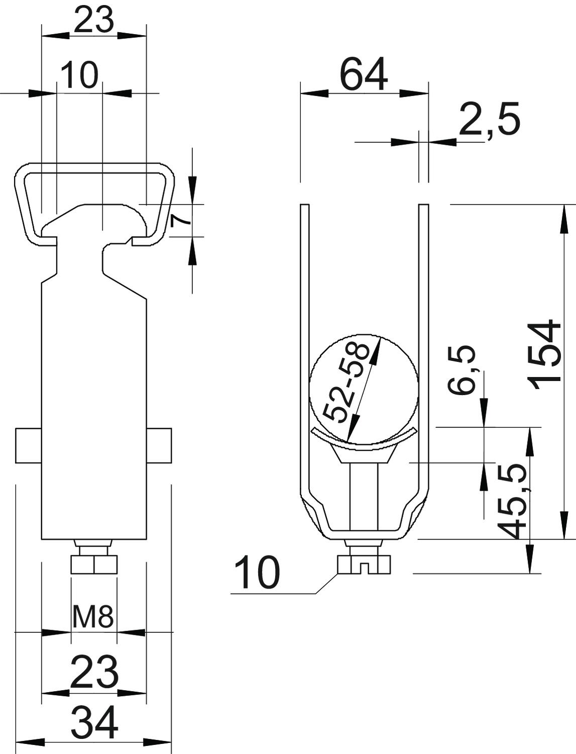 Hot-dip galvanised steel clamp and bolt, polypropylene pressure trough, halogen-free, colour light grey RAL 7035.