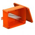 Unequipped, closed connection or junction box for free termination with ceramic terminals and cable glands. Dimension A states the available support rail length for the wiring terminals. Sufficiently large wiring compartment through diagonally arranged support rail. Fastening on easily accessible external flaps made of stainless steel. Approved for cable systems that maintain the electrical function according to DIN 4102 Part 12 with the classes E30, E60 and E90.
