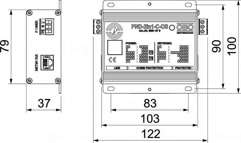 | Impulse durability wire-earth | C2: 3 kV / 1,5 kA (8/20µs) |