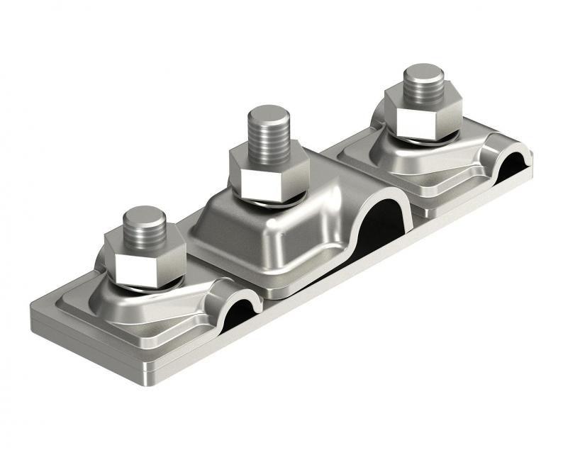 Connection plate to connect two isCon® conductors with air-termination rod Ø 16 mm, tested up to 150 kA (lightning protection class II)