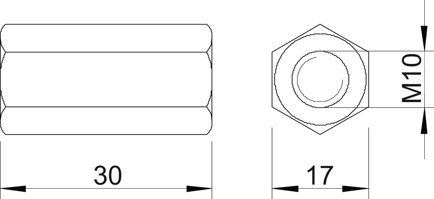 Connection sleeve with continuous internal thread.