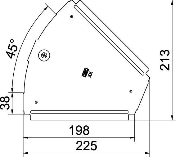 Cover for 45° bend fitting for lockable and screw-on cable trays in indoor areas, to protect cables against damage and soiling. Fastening with pre-mounted sash lock and through attachment of the section cover. Suitable for all side heights.