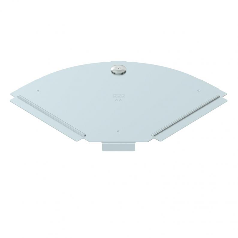 Cover for 90° bend fitting for lockable and screw-on cable trays in indoor areas, to protect cables against damage and soiling. Fastening with pre-mounted sash lock and through attachment of the section cover. Suitable for all side heights.