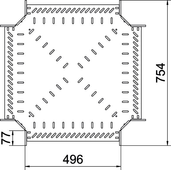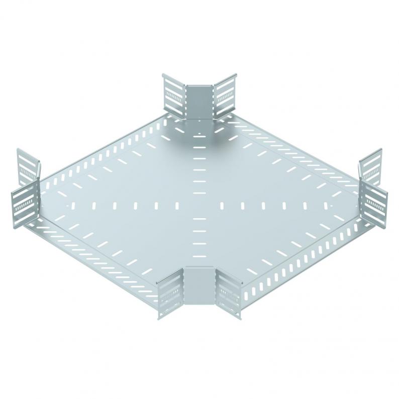 Cross-over for the creation of a horizontal branch, fitting for lock and screw-on cable trays of side height 110 mm. Screwless mounting with double clamps or screw connection with FRS truss-head screws and M6 combination nuts. Can be used in indoor areas. Fastening material must be ordered separately.