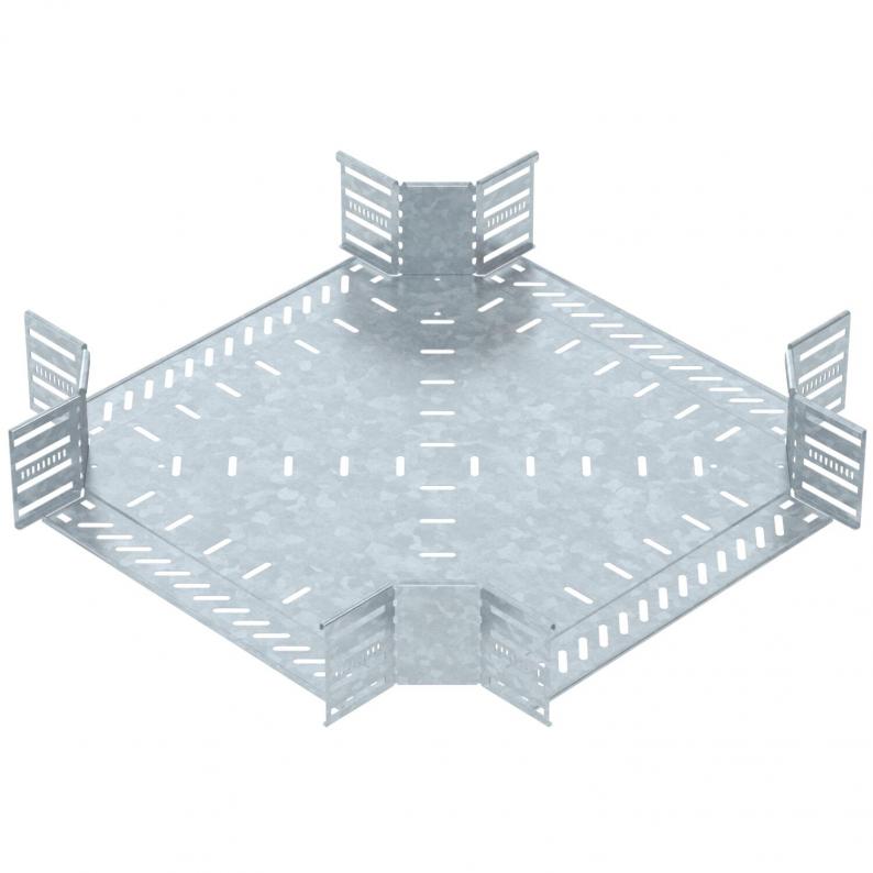 Cross-over for the creation of a horizontal branch, fitting for lock and screw-on cable trays of side height 110 mm. Screwless mounting with double clamps or screw connection with FRS truss-head screws and M6 combination nuts. Can be used indoors and outdoors. Fastening material must be ordered separately.