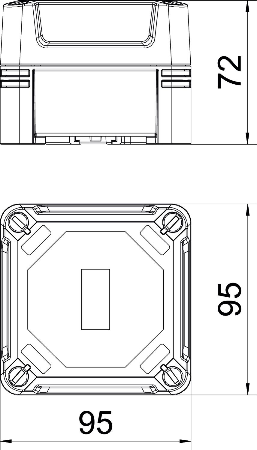 Junction box for the connection of cables and lines indoors and in outdoor areas. Square design without entries. Suitable for wall and ceiling mounting with the option to fasten outside, inside or to mount via the corner domes. Particularly impact resistant with IK09. Transparent cover with quick lock, sealable. Made from halogen-free and UV-resistant materials.