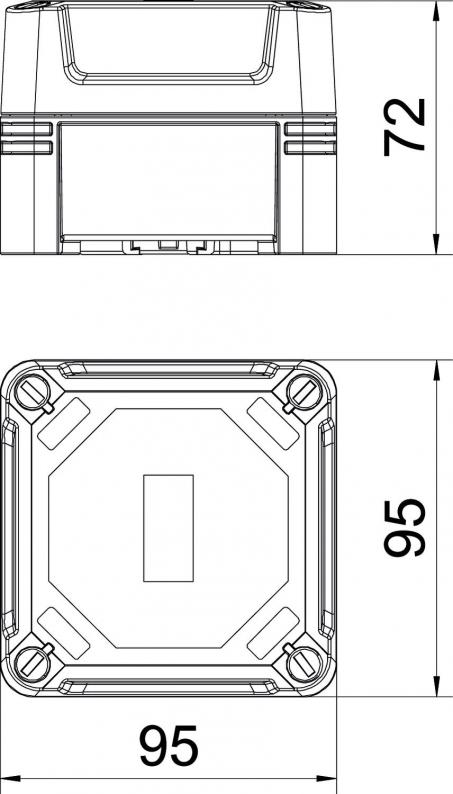 Junction box for the connection of cables and lines indoors and in outdoor areas. Square design without entries. Suitable for wall and ceiling mounting with the option to fasten outside, inside or to mount via the corner domes. Particularly impact resistant with IK09. Cover with quick lock, sealable. Made from halogen-free and UV-resistant materials.