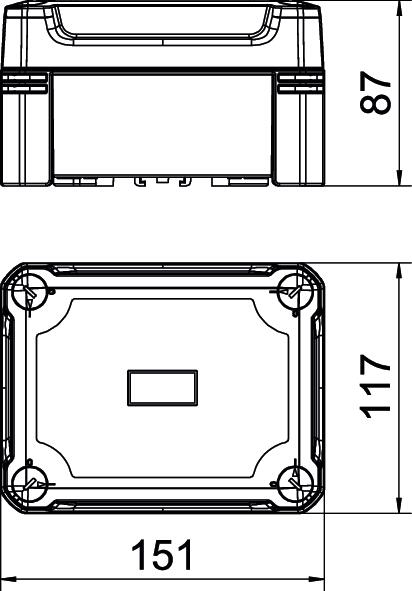 Junction box for the connection of cables and lines indoors and in outdoor areas. Rectangular design without entries. Suitable for wall and ceiling mounting with the option to fasten outside, inside or to mount via the corner domes. Particularly impact resistant with IK09. Cover with quick lock, sealable. Made from halogen-free and UV-resistant materials.