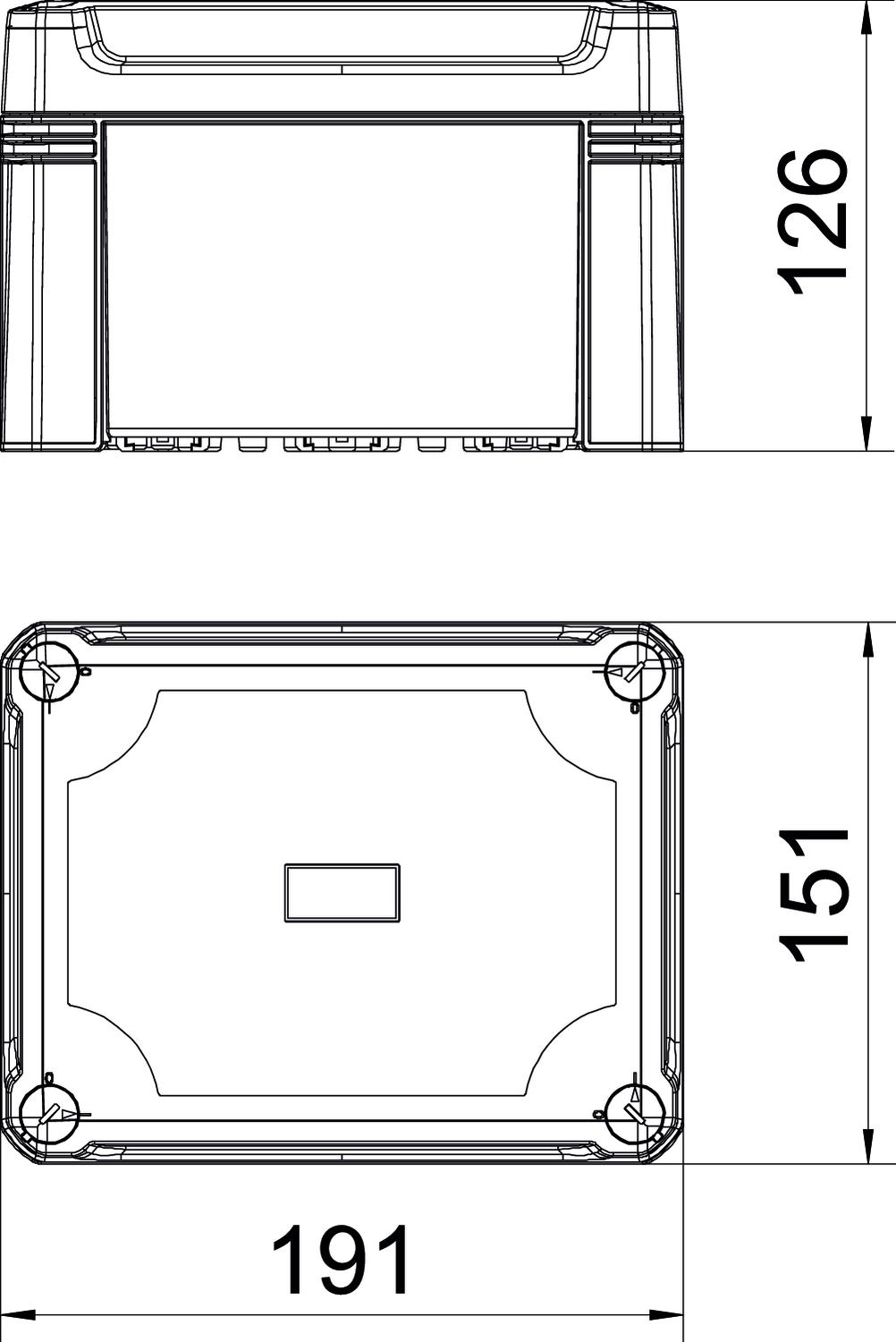 Junction box for the connection of cables and lines indoors and in outdoor areas. Rectangular design without entries. Suitable for wall and ceiling mounting with the option to fasten outside, inside or to mount via the corner domes. Particularly impact resistant with IK09. Transparent cover with quick lock, sealable. Made from halogen-free and UV-resistant materials.