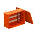 Connection box for data technology with soft plug-in seals. Pairs of high-temperature-resistant ceramic terminals, suitable for data cables. Green-yellow labelled protective conductor/shield terminal. Fastening on easily accessible external flaps. Approved for cable systems that maintain the electrical function according to DIN 4102 Part 12 with the classes E30, E60 and E90. Ceramic clamps have been tested according to DIN EN 60998-2-1:2004.