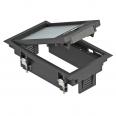 Service outlet with handle clamp for up to 3 individual Modul 45 devices in one UT3 universal support, use in duct systems and system floors for indoor use.