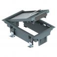 Service outlet with handle clamp for up to 3 individual Modul 45 devices in one UT3 universal support, use in duct systems and system floors for indoor use.