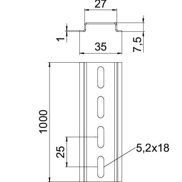 Hat profile rail 35 x 7.5 mm to DIN EN 60715 (formerly DIN EN 50022).