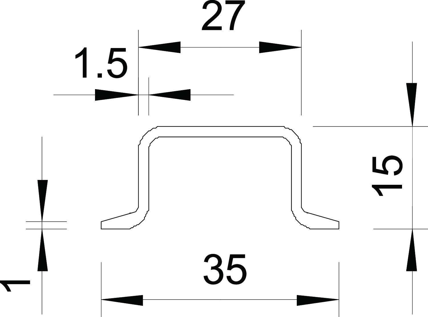 Hat profile rail 35 x 15 mm similar to DIN EN 60715 (formerly DIN EN 50022), but with material thickness 1.5 mm.