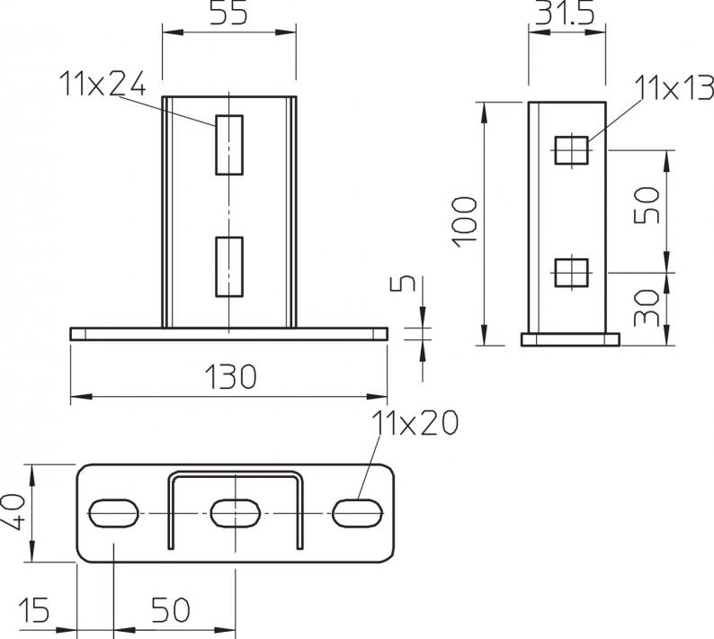 The head plate can be mounted to fixed lengths of the U support, type US 3.