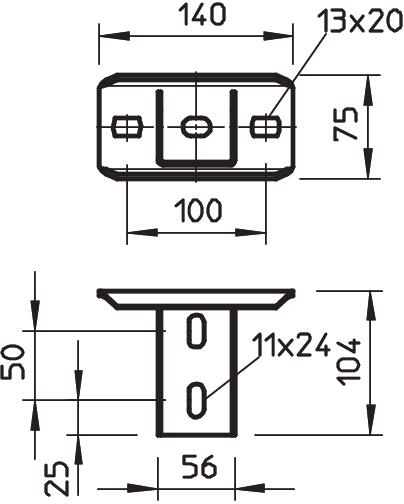 Head plate for mounting on US 5 supports. In combination with the US 5 support, suspended supports of any length can be created in situ. Also suitable for fixing vertical ladders, type SLM 50.